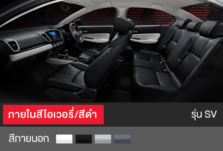 | สีภายใน | ดำ | ทูโทน (ไอเวอรี่/ดำ) | ดำ | |