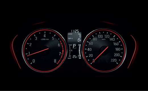 หน้าจอแสดงข้อมูลการขับขี่ พร้อมมาตรวัดเรืองแสงสีแดง