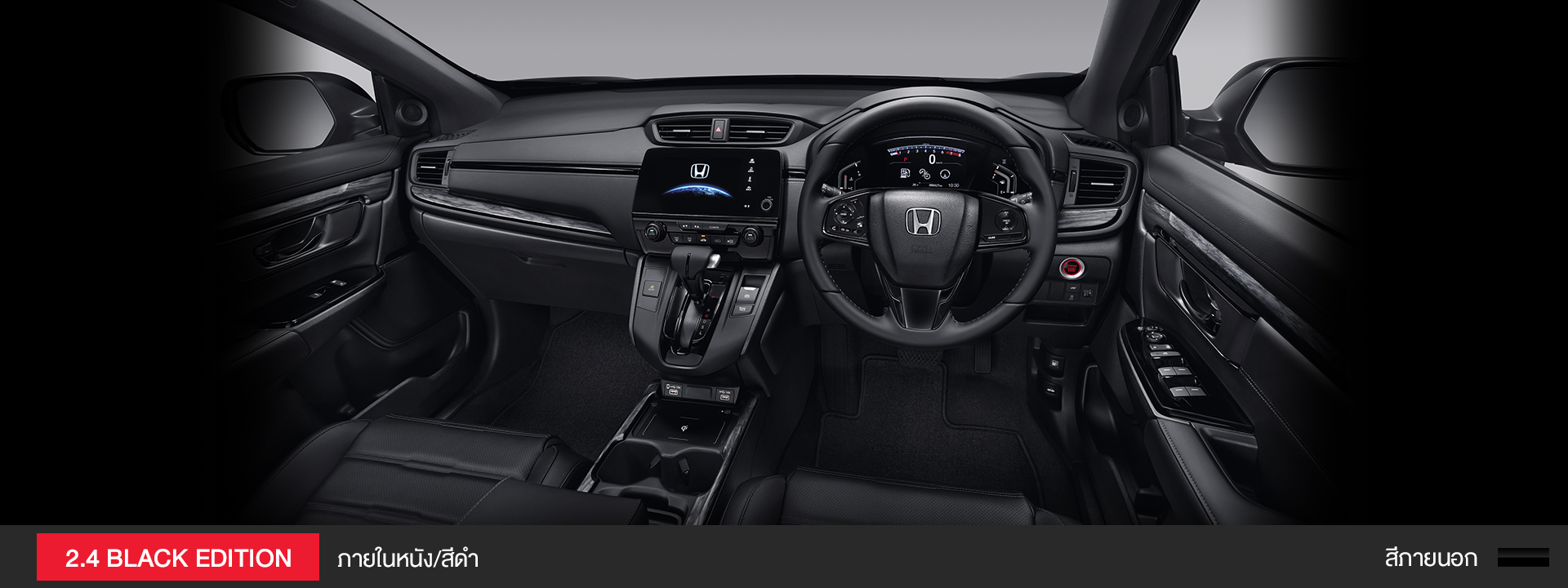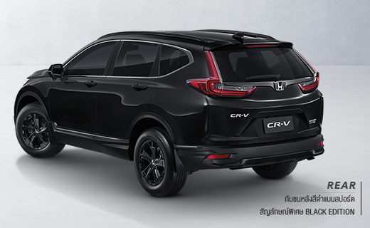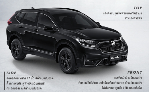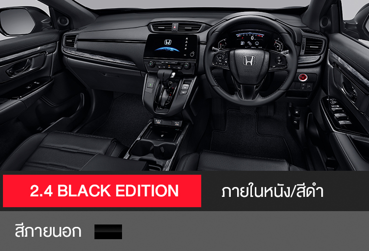 เผยความสปอร์ต เข้มเต็มสไตล์ BLACK EDITION อีกหนึ่งตัวตนใหม่ของ ฮอนด้า ซีอาร์-วี ที่ยกระดับความสปอร์ต แข็งแกร่งในทุกมิติ ด้วยดีไซน์เอกซ์คลูซีฟรอบคัน เผยมุมมองใหม่ด้วยหลังคาซันรูฟไฟฟ้าแบบพาโนรามา ขับเคลื่อนอย่างทรงพลังด้วยเครื่องยนต์เบนซิน 2.4 ลิตร DOHC i-VTEC มาพร้อมเบาะโดยสาร 5 ที่นั่ง ครบครันด้วยฟังก์ชันล้ำสมัยระดับพรีเมียม