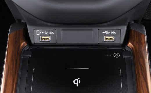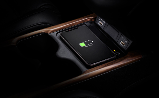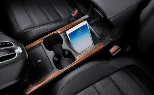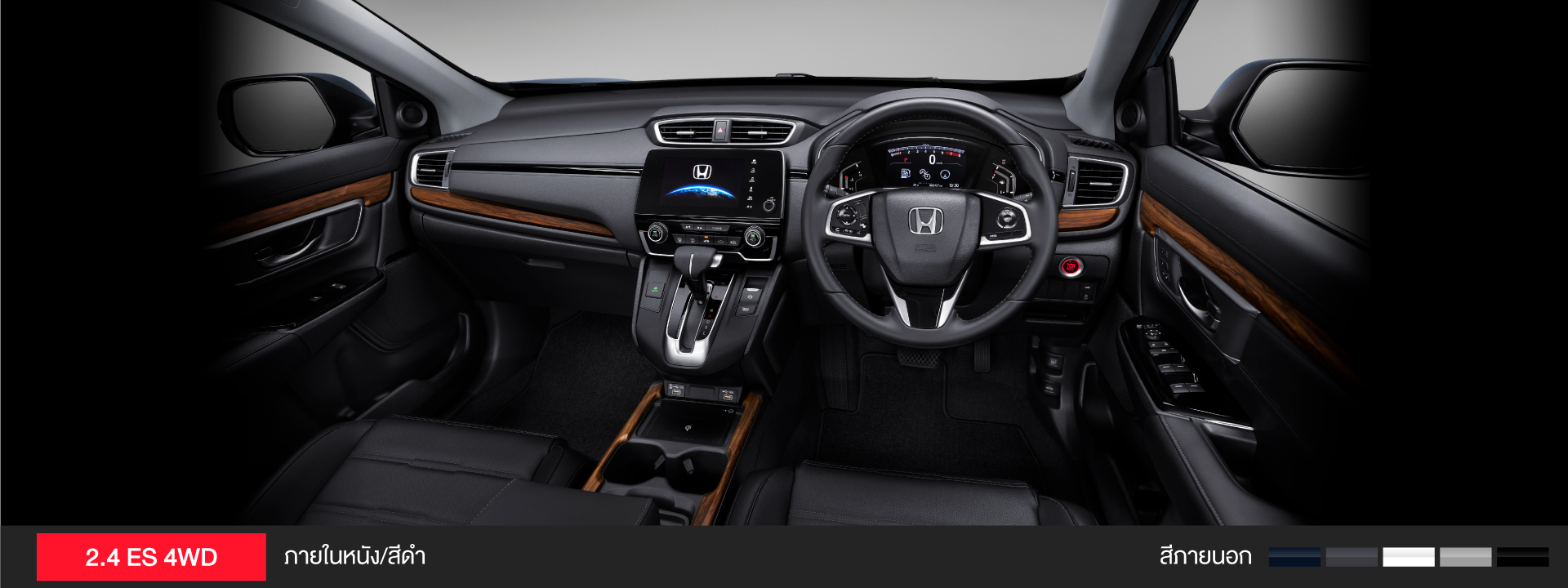 คอนโซลหน้าขนาดใหญ่ตกแต่งด้วยลายไม้และวัสดุสีดำ Piano Black พร้อมอุปกรณ์อำนวยความสะดวกครบครัน