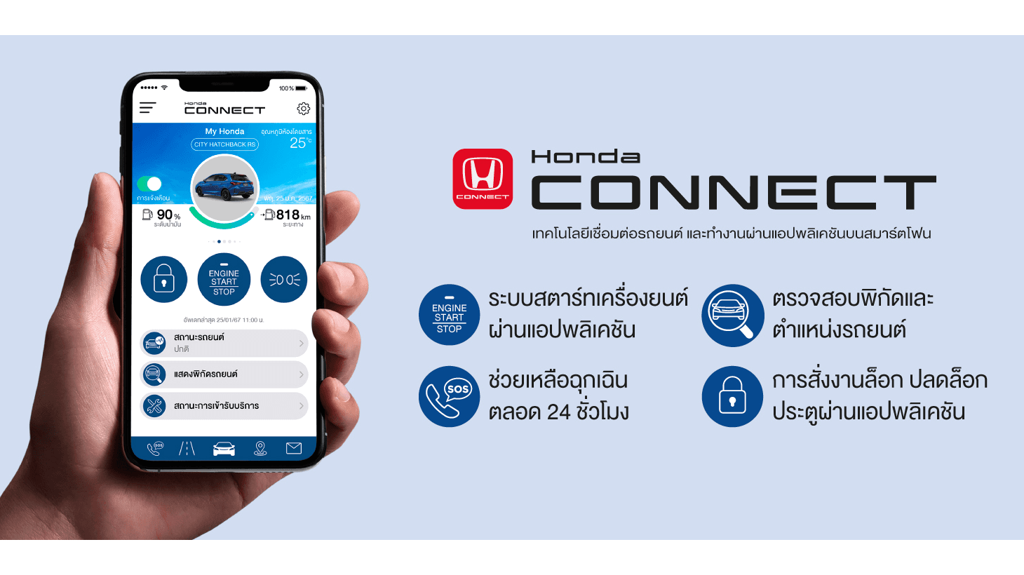 • ยกระดับชีวิตให้สมาร์ตขึ้นไปอีกขั้นกับ ฮอนด้า คอนเนค (Honda CONNECT) เทคโนโลยีเชื่อมต่อเพื่อการสื่อสารระหว่างผู้ขับขี่และรถยนต์ (รุ่น RS และ e:HEV RS) ทำงานผ่านแอปพลิเคชันบนมือถือ
