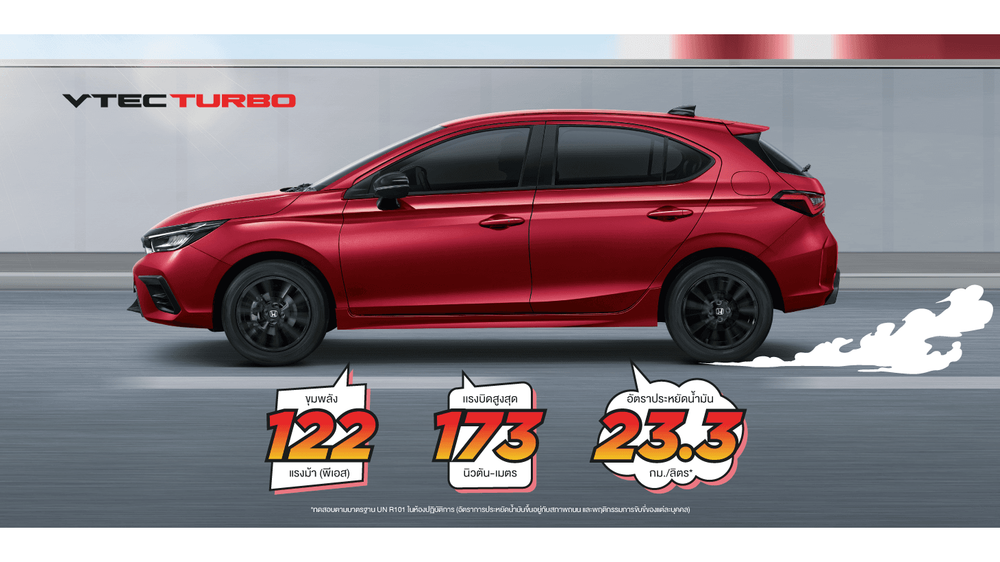 • ขุมพลัง TURBO กับเครื่องยนต์เบนซินขนาด 1.0 ลิตร DOHC VTEC TURBO 3 สูบ 12 วาล์ว ที่มาพร้อม Turbocharger ขับสนุกทุกเส้นทาง มอบอัตราเร่งแรงเร้าใจได้ตามคิดด้วยกำลังสูงสุด 122 แรงม้า ที่ 5,500 รอบต่อนาที ตอบสนองทันใจด้วยแรงบิดสูงสุด 173 นิวตัน-เมตร ที่ 2,000 - 4,500 รอบต่อนาที ผสานการทำงานกับระบบเกียร์อัตโนมัติอัตราทดแปรผันต่อเนื่อง (CVT) อีกทั้งประหยัดน้ำมันเกินคาดด้วยอัตราการประหยัดน้ำมันที่สูงถึง 23.3 กิโลเมตร/ลิตร มีอัตราการปล่อยก๊าซคาร์บอนไดออกไซด์ที่ 100 กรัม/กิโลเมตร และรองรับน้ำมัน E20