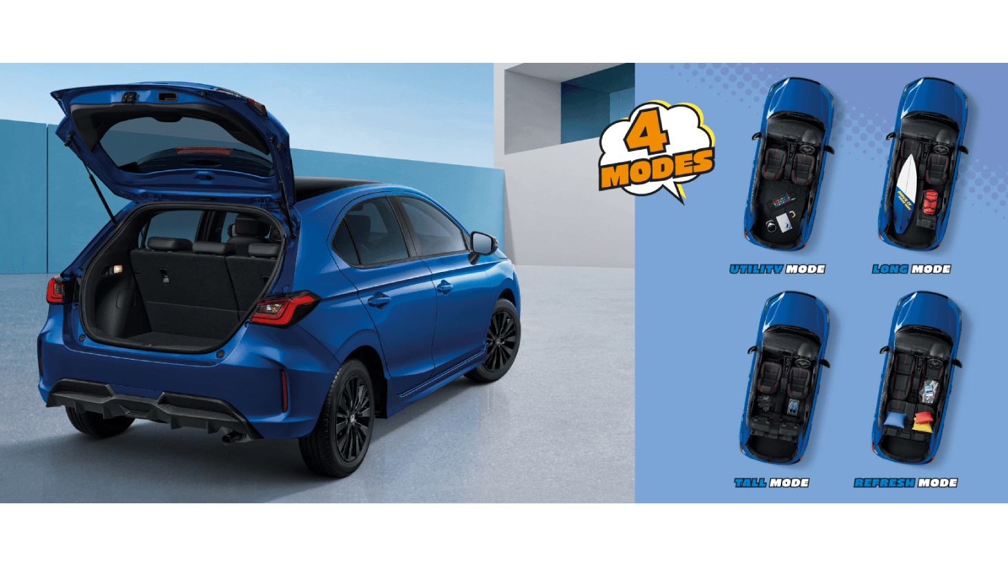 • Tall Mode: เบาะด้านหลังพับขึ้น เพิ่มพื้นที่เก็บของในแนวสูง