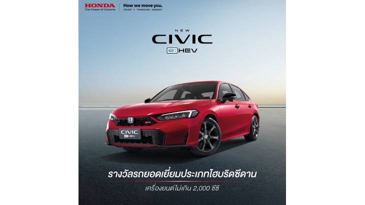 ฮอนด้า เริ่มต้นปี 2568 ด้วยรางวัลที่สะท้อนความเชื่อมั่นของลูกค้า โดย บริษัท ฮอนด้า ออโตโมบิล (ประเทศไทย) จำกัด คว้า 4 รางวัลรถยอดเยี่ยมแห่งปีในงาน Car of the Year 2025 จากบริษัท กรังด์ปรีซ์ อินเตอร์เนชั่นแนล จำกัด (มหาชน) นำโดยไลน์อัป e:HEV ยนตรกรรมฟูลไฮบริด 3 รุ่น ที่สามารถคว้ารางวัลรถยอดเยี่ยมแห่งปีต่อเนื่อง 2 ปีซ้อน (ปี 2024 - 2025) ได้แก่ ฮอนด้า ซีวิค รุ่น e:HEV RS ฮอนด้า แอคคอร์ด อี:เอชอีวี รุ่น e:HEV RS และฮอนด้า ซีอาร์-วี รุ่น e:HEV RS โดยไลน์อัปฟูลไฮบริด e:HEV เป็นเทคโนโลยีที่ลงตัวกับการใช้ชีวิต มอบสมรรถนะการขับขี่อันทรงพลัง อัตราการประหยัดน้ำมันดีเยี่ยม มั่นใจยิ่งขึ้นกับเทคโนโลยีความปลอดภัยอัจฉริยะ Honda SENSING ที่ติดตั้งในยนตรกรรมไลน์อัป e:HEV ทุกรุ่น พร้อมด้วยอีกหนึ่งรางวัลรถยอดเยี่ยมแห่งปี กับ ฮอนด้า ซีวิค ไทป์ อาร์ ที่สุดแห่งความสปอร์ตระดับตำนาน