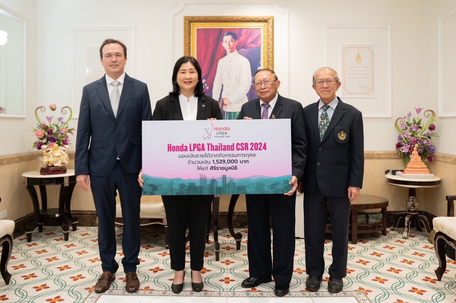 การแข่งขันกอล์ฟสตรีระดับโลก ฮอนด้า แอลพีจีเอ ไทยแลนด์ 2024 มอบเงินบริจาคจากกิจกรรม Honda LPGA Thailand 2024 Charity Night พร้อมด้วยเงินสมทบ รวมทั้งสิ้น 1,529,000 บาท ให้แก่ศิริราชมูลนิธิ เพื่อช่วยเหลือผู้ป่วยด้อยโอกาส รวมถึงจัดซื้อครุภัณฑ์ทางการแพทย์ รวมถึงสนับสนุนการอบรมศึกษาและการค้นคว้าวิจัยของคณะแพทยศาสตร์ศิริราชพยาบาล