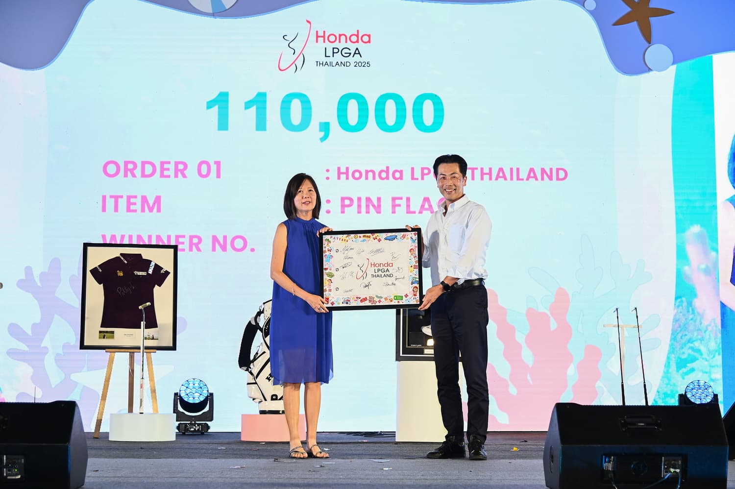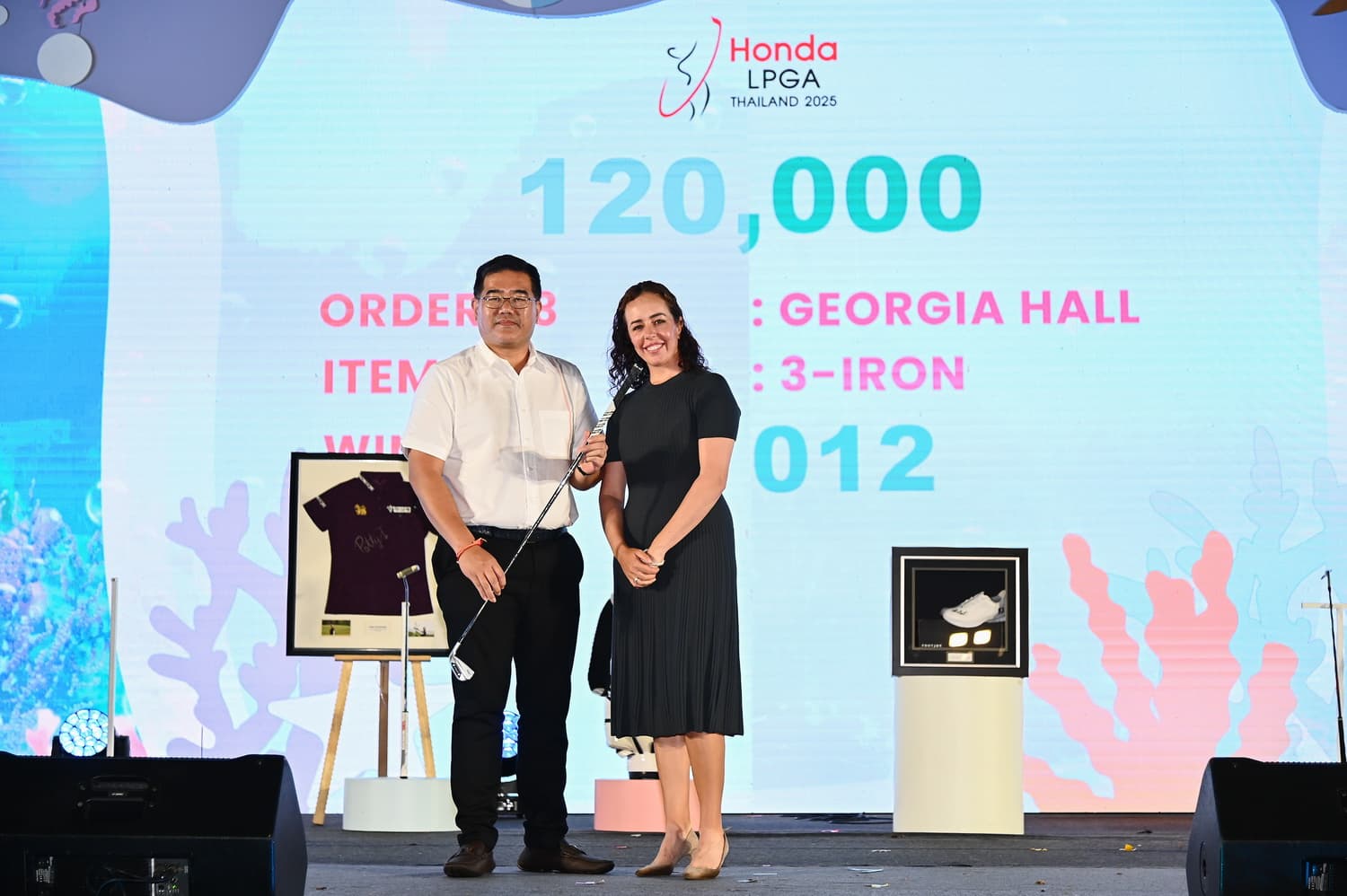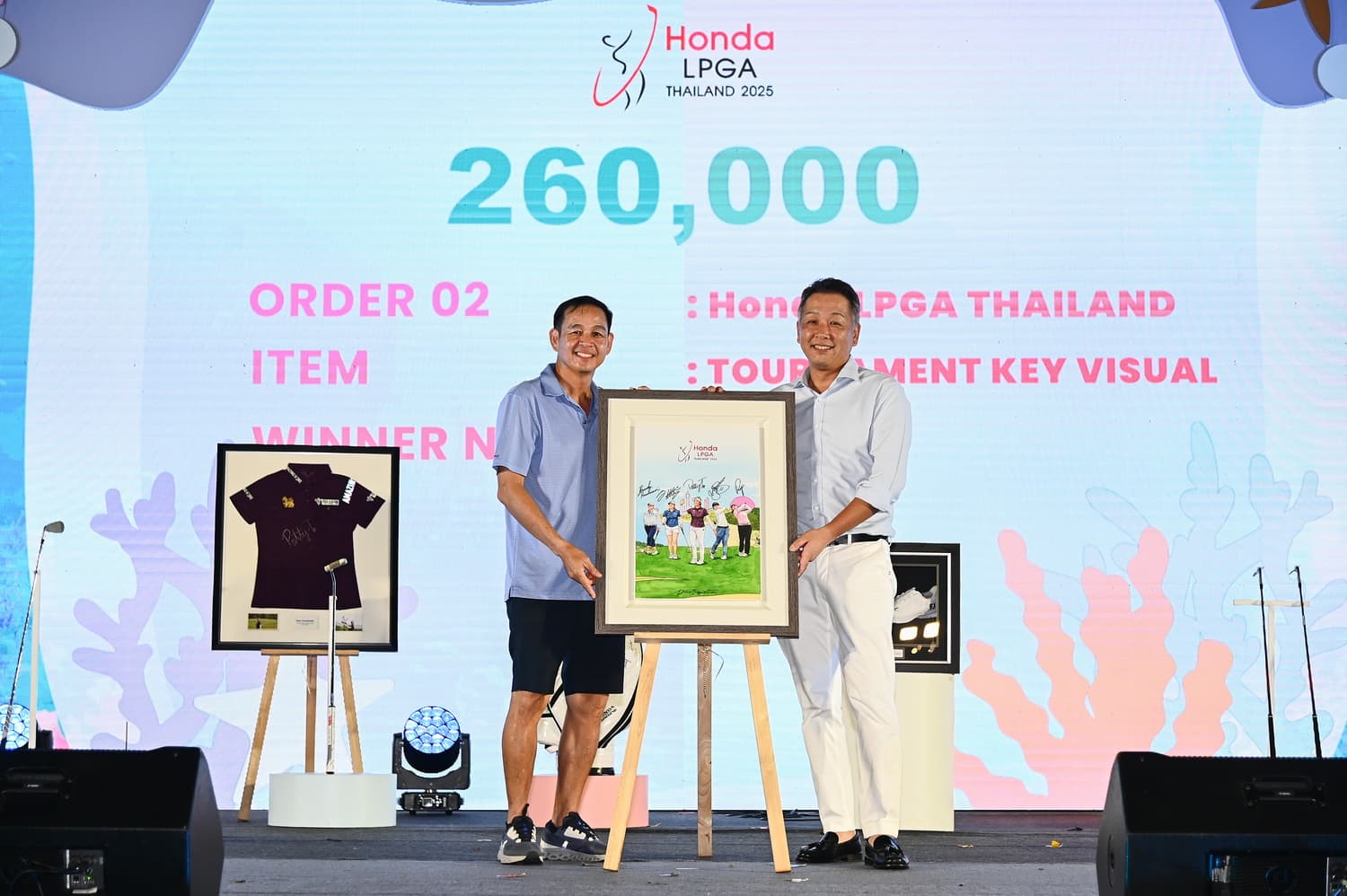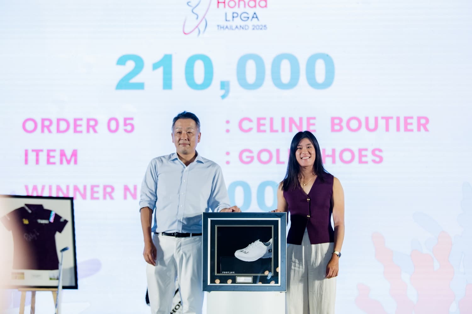 นอกจากนี้ ยังมีไอเทมของรักนักกอล์ฟคนอื่น ๆ ได้แก่ ธงพร้อมลายเซ็นนักกอล์ฟไทยทั้ง 12 คนที่เข้าร่วมการแข่งขันในปีนี้ ออกแบบโดย เบนซ์-มยาวี ทองสงฆ์ หรือ เบนซ์บลู (BENXBLUES) ดีไซน์เนอร์รุ่นใหม่ โดยผู้ชนะการประมูล ได้แก่ คุณทัน เค็นวี รองกรรมการผู้จัดการ บริษัท คาห์ มอร์เตอร์ (Kah Motor) จำกัด ราคาประมูล 110,000 บาท ภาพวาดโปสเตอร์ การแข่งขัน ฮอนด้า แอลพีจีเอ ไทยแลนด์ 2025 พร้อมลายเซ็น 5 นักกอล์ฟ ประกอบด้วย 2 นักกอล์ฟระดับโลกของไทย จีโน่-อาฒยา ฐิติกุล มืออันดับ 2 ของโลก และ แพตตี้-ปภังกร ธวัชธนกิจ มืออันดับ 25 ของโลก รวมถึง รัวหนิง หยิน มืออันดับ 4 ของโลกจากจีน ยูกะ ซาโสะ มืออันดับ 19 ของโลกจากญี่ปุ่น และ บรู๊ค เอ็ม เฮนเดอร์สัน มืออันดับ 29 ของโลกจากแคนาดา ซึ่งผู้ชนะการประมูล ได้แก่ คุณบุญยศ บุญเกียรติเจริญ ประธาน บริษัท ยศเจริญ ฮอนด้า กิ่งแก้ว จำกัด ซึ่งประมูลไปในราคา 260,000 บาท และเหล็ก 3 ของ จอร์เจีย ฮอลล์ มืออันดับ 82 ของโลกจากอังกฤษ ซึ่งผู้ชนะการประมูล ได้แก่ คุณเบน เกียรติศรีธนากร ประธาน บริษัท N.C.X จำกัด โดยได้ประมูลไปในราคา 120,000 บาท