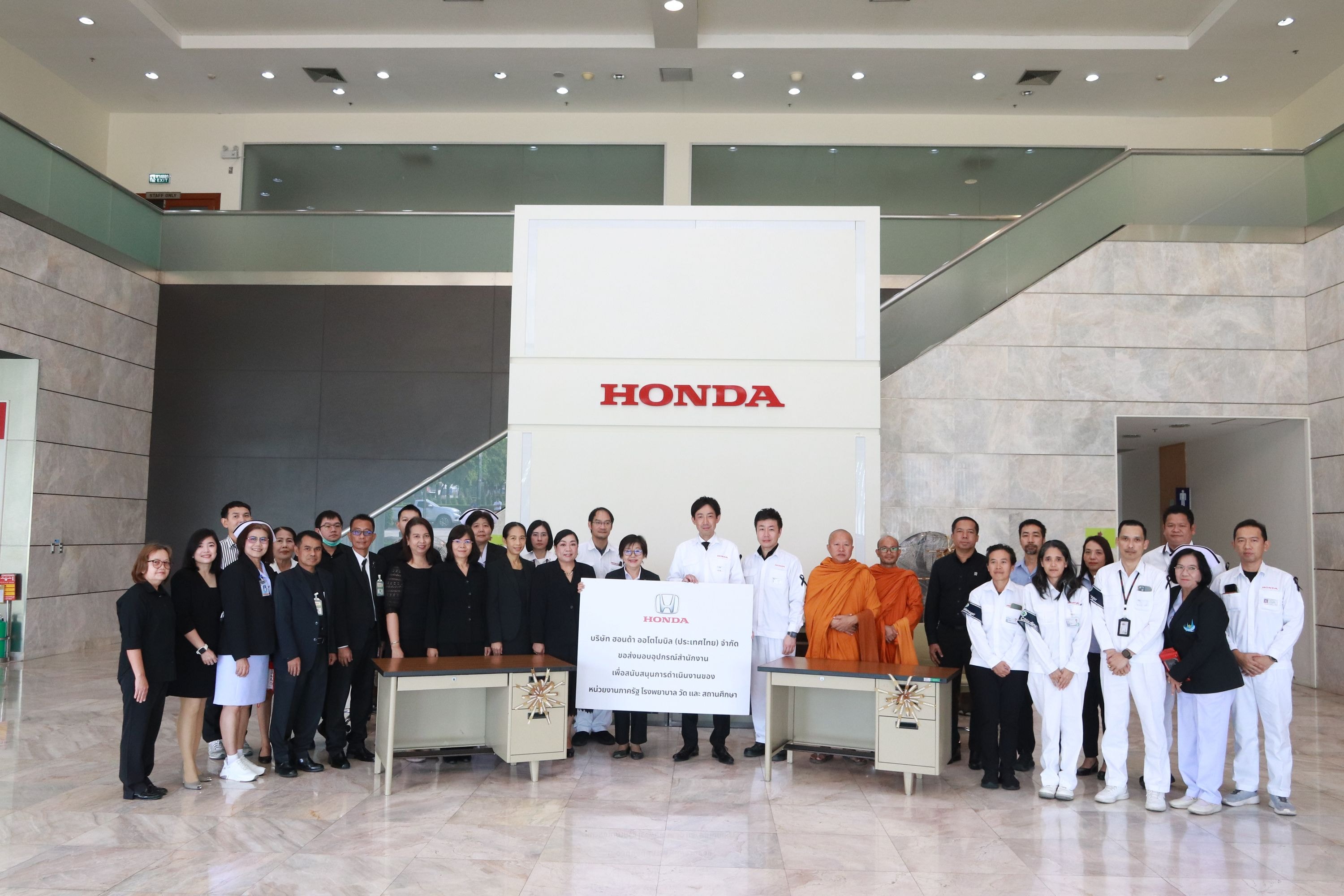 ฮอนด้าได้ส่งมอบอุปกรณ์สำนักงาน เพื่อสนับสนุนการดำเนินงานแก่หน่วยงานภาครัฐ โรงพยาบาล วัด และสถานศึกษา รวม 9 หน่วยงาน ได้แก่