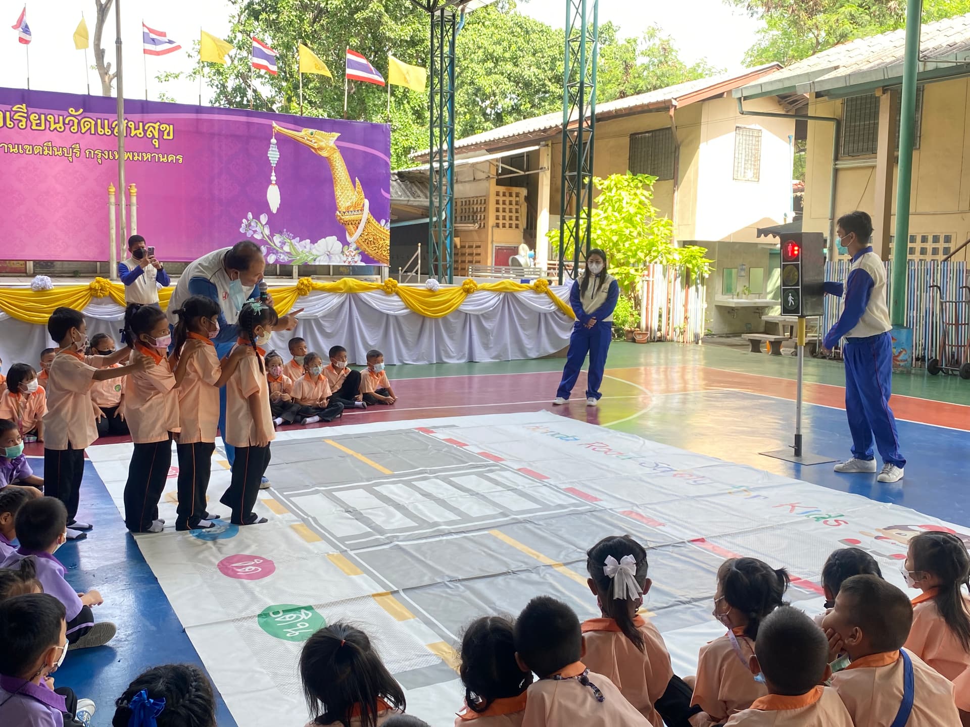 2) กิจกรรมด้านความปลอดภัย จัดกิจกรรมอบรมความรู้เรื่องการใช้ถนนอย่างปลอดภัย และข้อควรปฏิบัติแก่นักเรียน จัดทำห้องเรียนรู้เกี่ยวกับความปลอดภัยบนท้องถนน รวมทั้งปรับปรุงพื้นและเส้นทางจราจรและกระจกบริเวณทางโค้ง เพื่อช่วยเพิ่มความปลอดภัยและลดอุบัติเหตุ