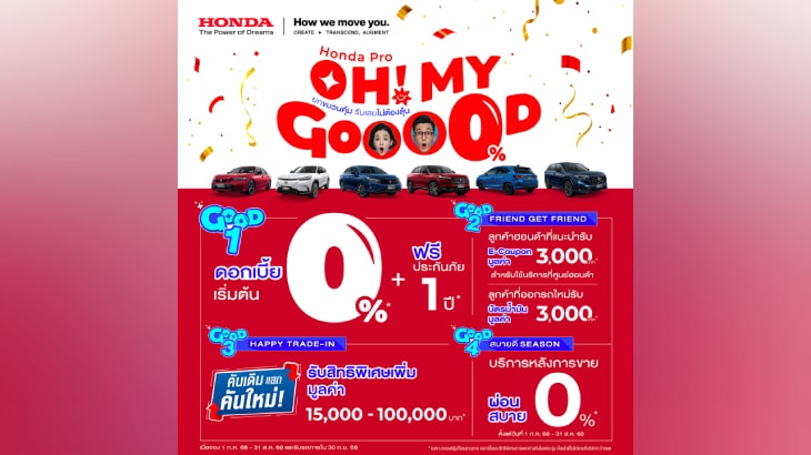 นอกจากนี้ ทุกรุ่นยังมาพร้อมข้อเสนอฟีลกู้ดแบบต่อเนื่อง ‘Honda Pro OH! MY GOOOOD ยกขบวนคุ้ม รับเลย