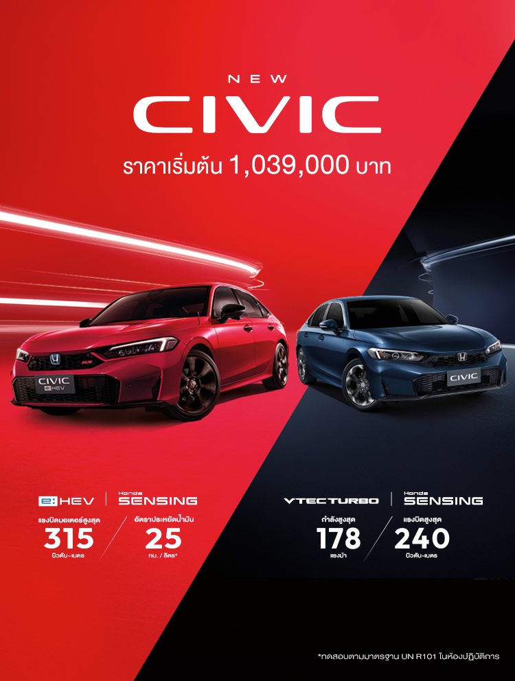เทคโนโลยีความปลอดภัยอัจฉริยะจากฮอนด้า มีใน ฮอนด้า ซีวิค ใหม่ ทุกรุ่นย่อย